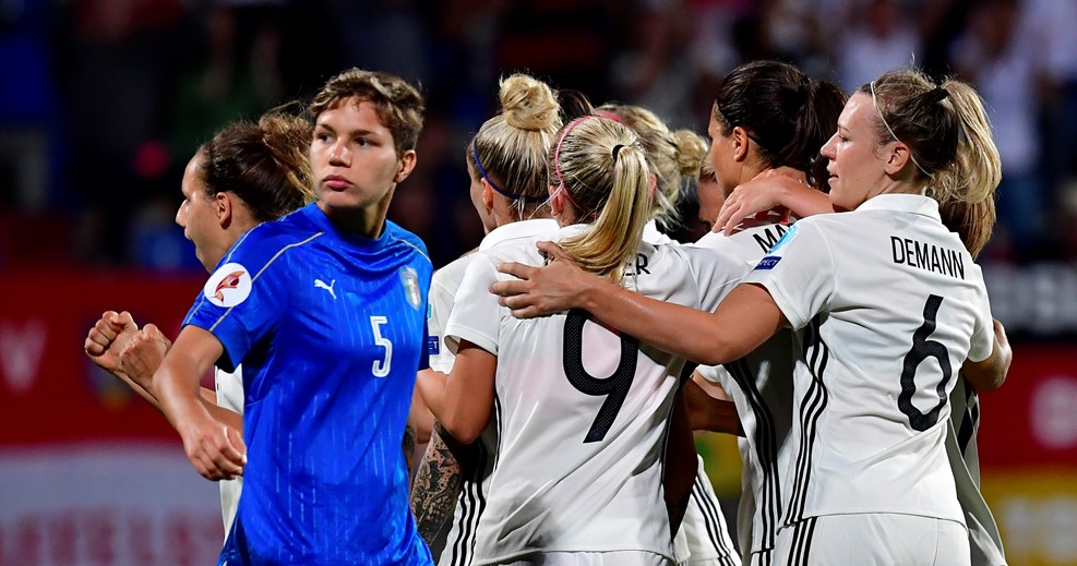 Já na outra partida, a Alemanha sofreu com a Itália, que entrou em campo sabendo que não podia perder hoje, senão estaria eliminada. As alemãs saíram na frente com Henning aos 19 do primeiro tempo, mas Mauro conseguiu o empate da Itália aos 29 minutos. O jogo continuou pegado, mostrando que não a toa, estávamos diante Alemanha e Itália. Aos 22 do segundo tempo, Peter converteu de pênalti, o segundo gol alemão. A partir daí, a Itália tentou de todas as formas balançar a redes das hexacampeãs, mas não foi possível. Além disso, a Alemanha passou, de forma mais organizada, a chegar no ataque e oferecer até mais perigo. Ao fim do jogo, Alemanha com o pé na segunda fase, enquanto a Itália é a primeira seleção eliminada da #Weuro