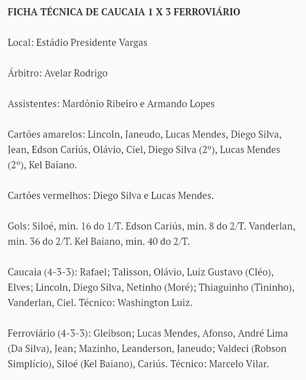 Depois do gol,o Caucaia passou a aparecer mais no ataque, enquanto o Ferrão tentava controlar a partida, arriscando apenas nos contra-ataques.