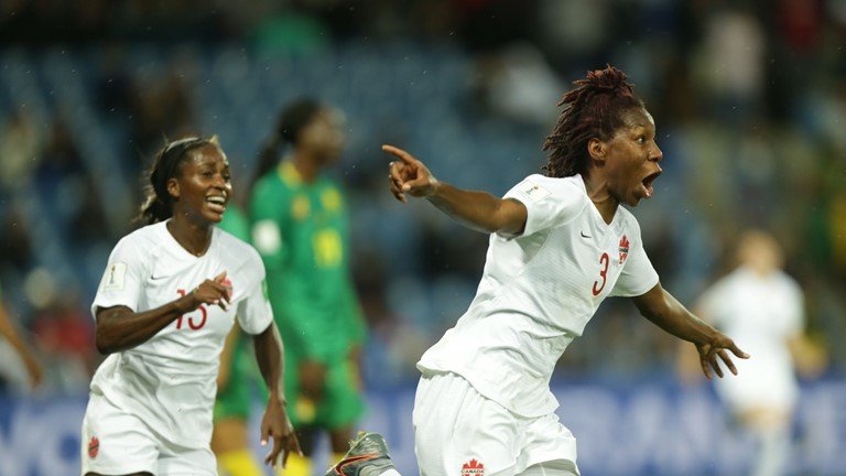 Na abertura do Grupo E, o Canadá conseguiu vencer apertado a seleção do Camarões. O gol saiu no fim do primeiro tempo, marcado pela defensora Buchanan. O Canadá dominou as ações do jogo, mas não conseguiu balançar as redes. O Camarões conseguiu oferecer algum perigo, mas também sem conseguir converter estes em gol.