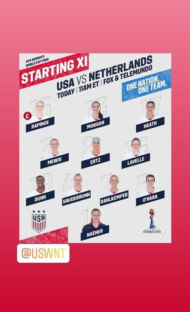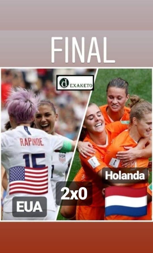 No segundo tempo, o quadro não mudou muito e as americanas insistiam no ataque, enquanto as holandesas começavam a ensaiar alguns contra-ataques. Próximo dos 15 minutos, a zagueira Van Der Gragt entrou descuidadosamente com o pé alto em direção de Alex Morgan, o VAR entrou em ação e o pênalti foi marcado. Rapinoe bateu e abriu o caminho para o título. 8 minutos depois, Lavelle carregou a bola, aproveitou da falha da marcação holandesa e meteu um golaço de fora da área. Era o gol do Tetra. Após isso, as holandesas tentaram ensaiar uma reação, mas foi os EUA que quase marcou o terceiro. Morgan, Heath e Press perderam chances claras. Nada mais alteraria o resultado do jogo e da copa, e a geração fantástica americana conquistaria mais um título Mundial.