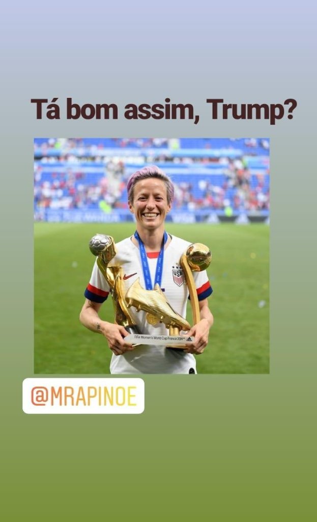 Rapinoe foi eleita a craque do Mundial, além disso, juntamente com Alex Morgan e a inglesa White se sagrou artilheiras do Mundial com 6 gols.