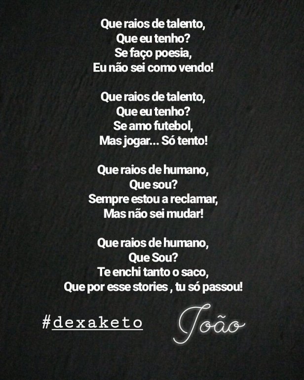 Relembre algumas das várias poesias soltas que já publiquei em outras redes sociais.