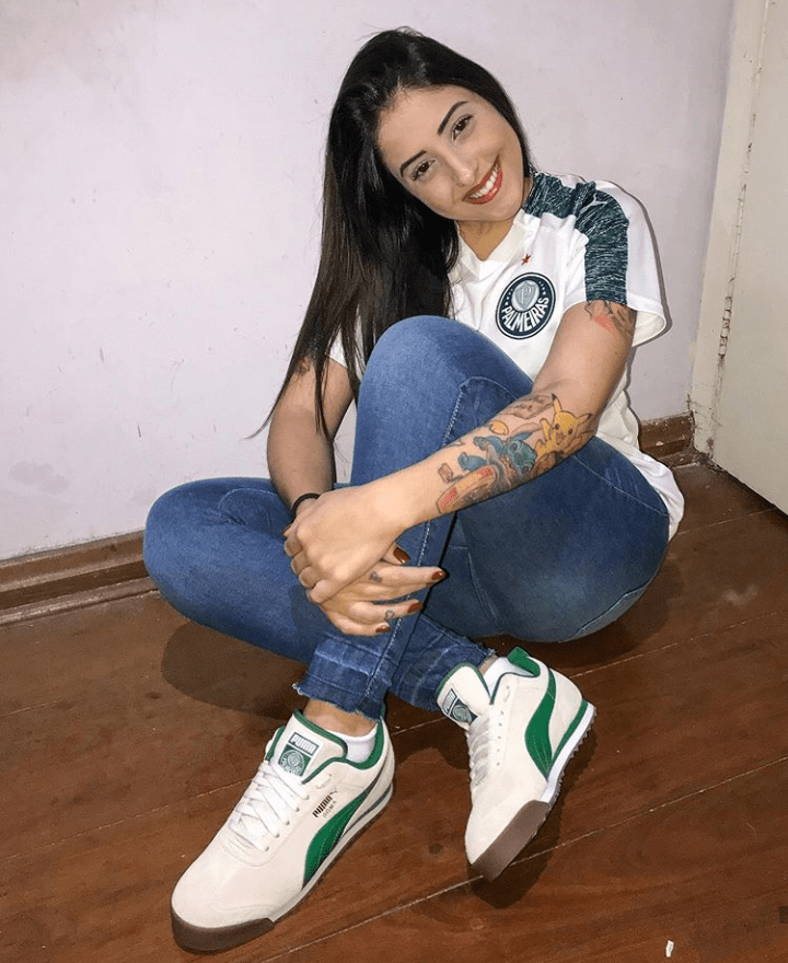 Nossa bela de hoje é uma das melhores palestrinas que existem no planeta. Uma pessoa incrível que quem a segue nas redes sociais ou a conhece pessoalmente ficam maravilhado com a essência de sua alma. Uma mulher forte, apaixonada pelo seu time e por todos que a ama. Tem tattoos belíssimas do monstro S.A e do Pikachu. Um ser humano que ama o Palmeiras e Pokémon, beira a divindade para mim. Espero que não se incomodem com o excesso de fotos de Gabi com a camisa do Verdão, mas porque ela fica muito mais bela com o manto sagrado alviverde. Impossível não adorar, Gabisinha!