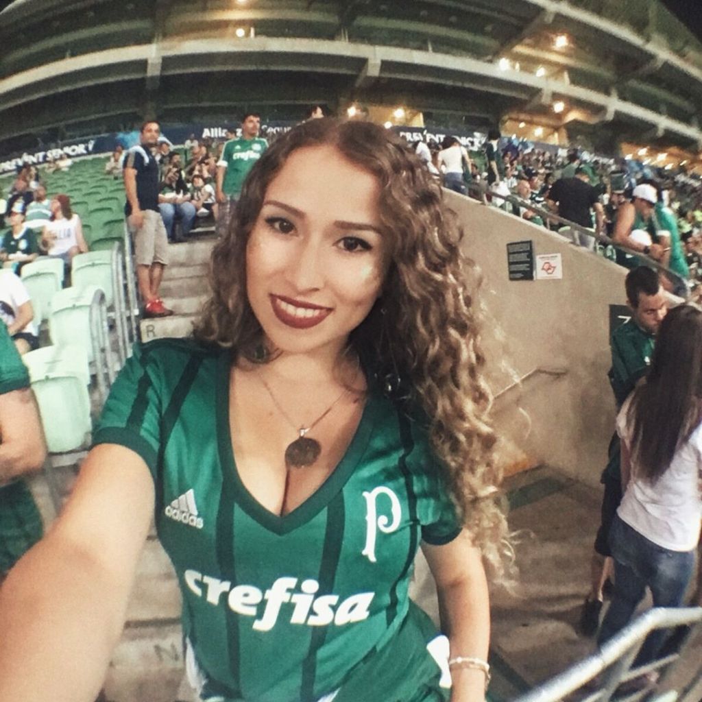 Hoje nossa homenagem é essa palestrina incrível! Sim, não é a primeira vez que a homenageamos (e nem será a última). Nina é uma das palestrinas mais fanáticas e apaixonadas pela Sociedade Esportiva Palmeiras que conheço. Seus cabelos ondulados e seu olhar penetrante são alguns de seus atributos de beleza mais marcante. Não há como não se encantar ou se perder na força desse impressionante olhar. Se não bastasse sua beleza e amor ao Palmeiras, Nina ainda é uma mulher irreverente, amiga e sincera. Nina é absolutamente maravilhosa! A melhor advogada m