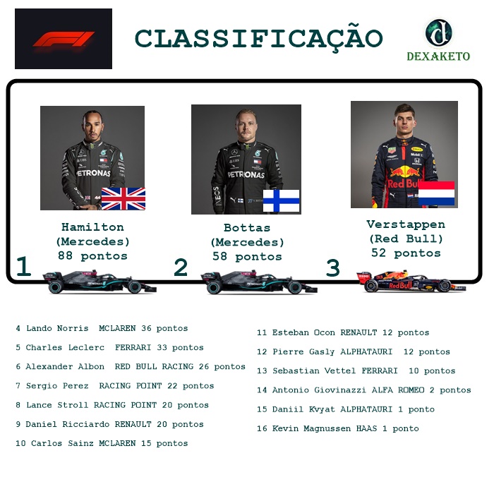 Hamilton não podia mais parar, então ele foi levando o carro. Verstappen se viu tentando tirar 30 segundos de diferença em uma única volta, e por pouco, não conseguiu. Apesar do pneu estourado, Hamilton levou a bandeirada em primeiro, apenas 5 segundos à frente de Verstappen.