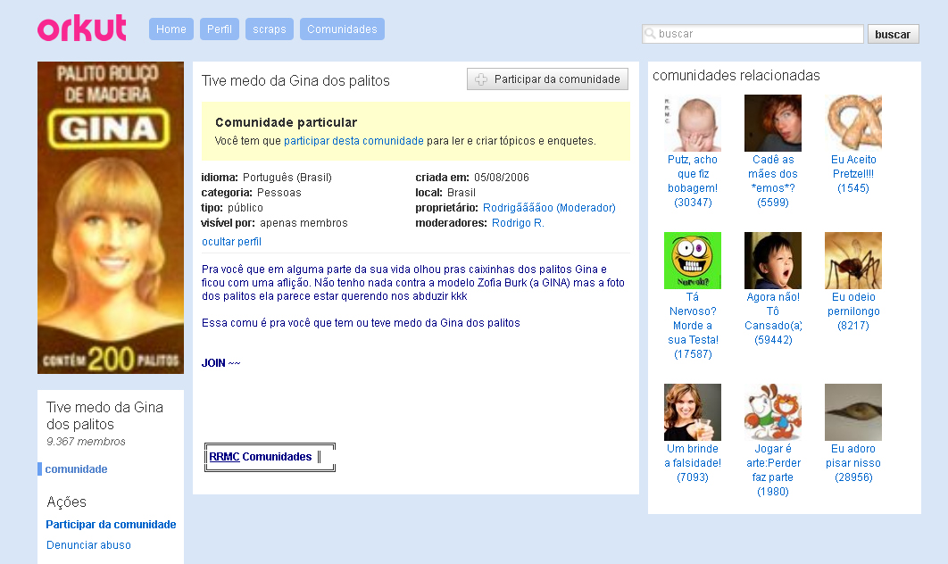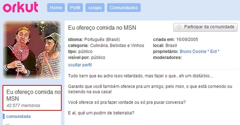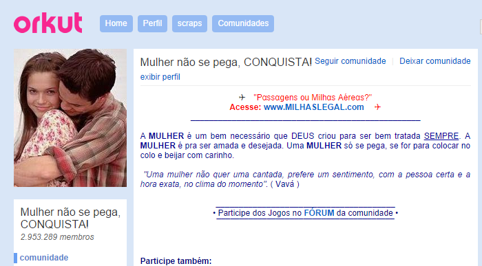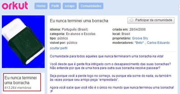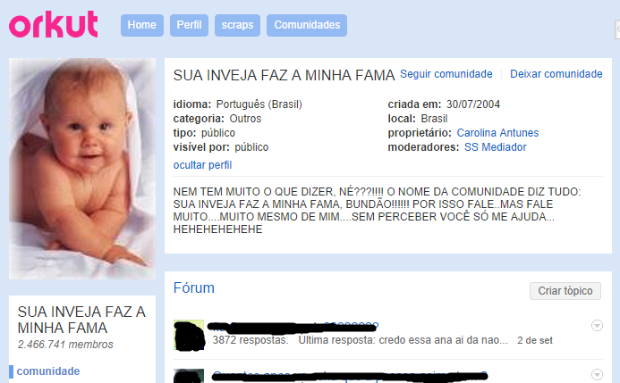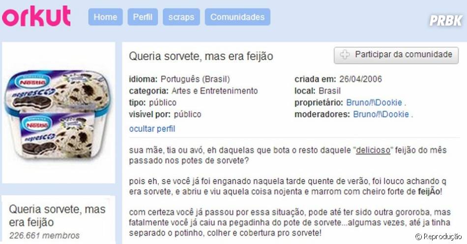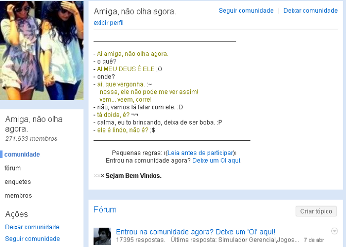 O Orkut ficou famoso por seus “depo”, sua entregação, já que você conseguia visualizar quem andou vendo seu perfil, e aqui no blog pelo Lendário “Karine, me Add”, logo no “inicinho” do Dexaketo. Porém, nada superava as comunidades. Os fóruns de temas “super” rebuscados, onde a juventude da época se acabava de tanto rir e zoar. E este post, veio para ti relembrar de diversas Comunidades. Volte uns 10 anos no tempo, e depois negue tudo para a geração atual, para demonstrar uma certa maturidade diante a geração “Facebook- Whatsapp-Twitter-SnapChat-Telegram-Skype….” kkkkkk
