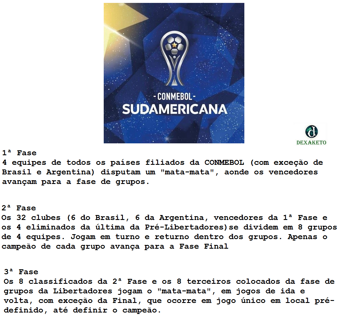 A partir de 2021, a Copa Sul-americana ganhará o novo formato. O tradicional formato de “mata-mata” dará lugar a uma fase de grupos. Apenas nas temporadas 2002 e 2003 a “Sula” contou com fase de grupos. Além disso, times brasileiros e argentinos já entram direto na 2ª Fase. Segue a Final em jogo único em sede pré-definida.