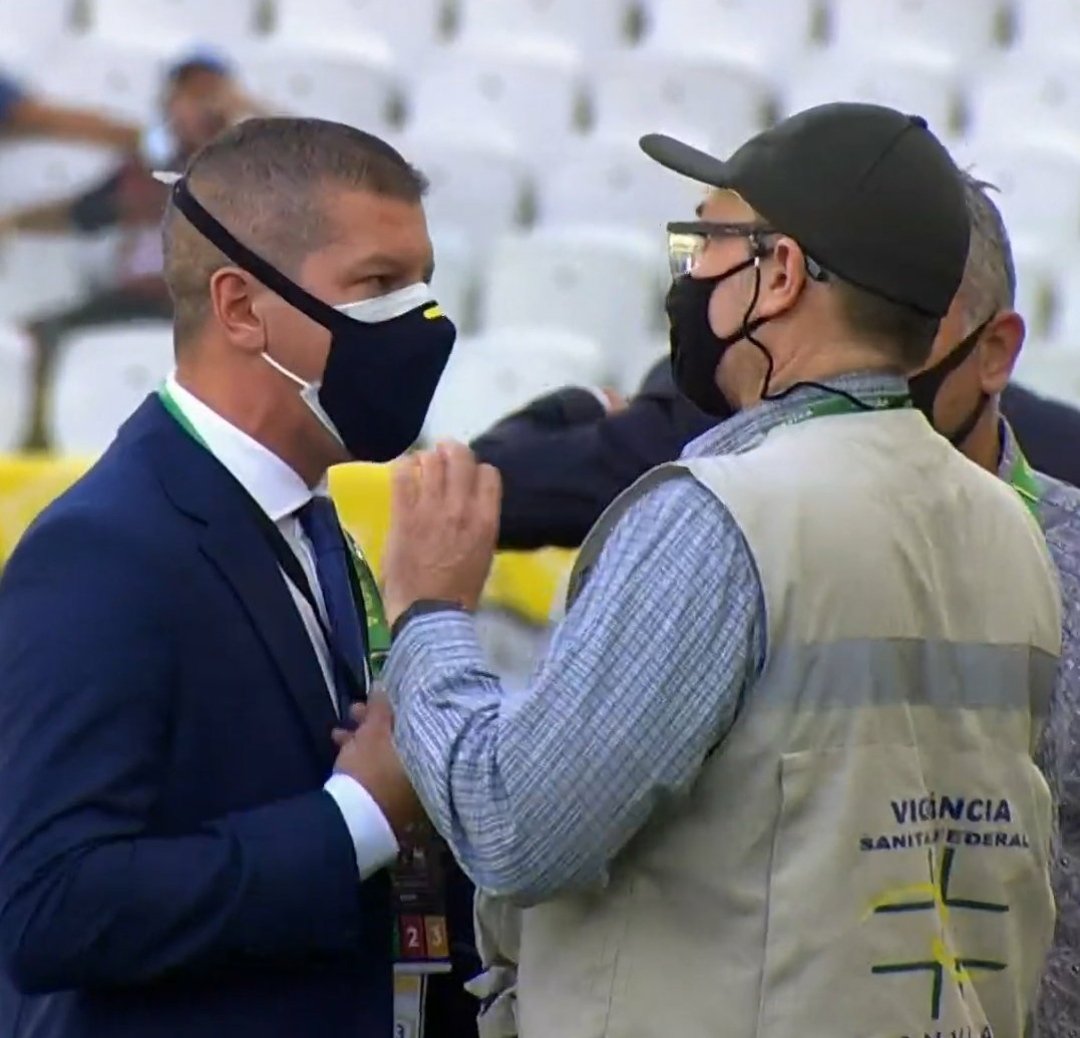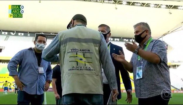 Aos 4 minutos do primeiro tempo do jogo entre Brasil x Argentina na NeoQuímica Arena, pelas Eliminatórias da Copa 2022, um inspetor da ANVISA entrou no gramado de jogo e interrompeu a partida devido a um descumprimento de protocolos por parte da Seleção Argentina.