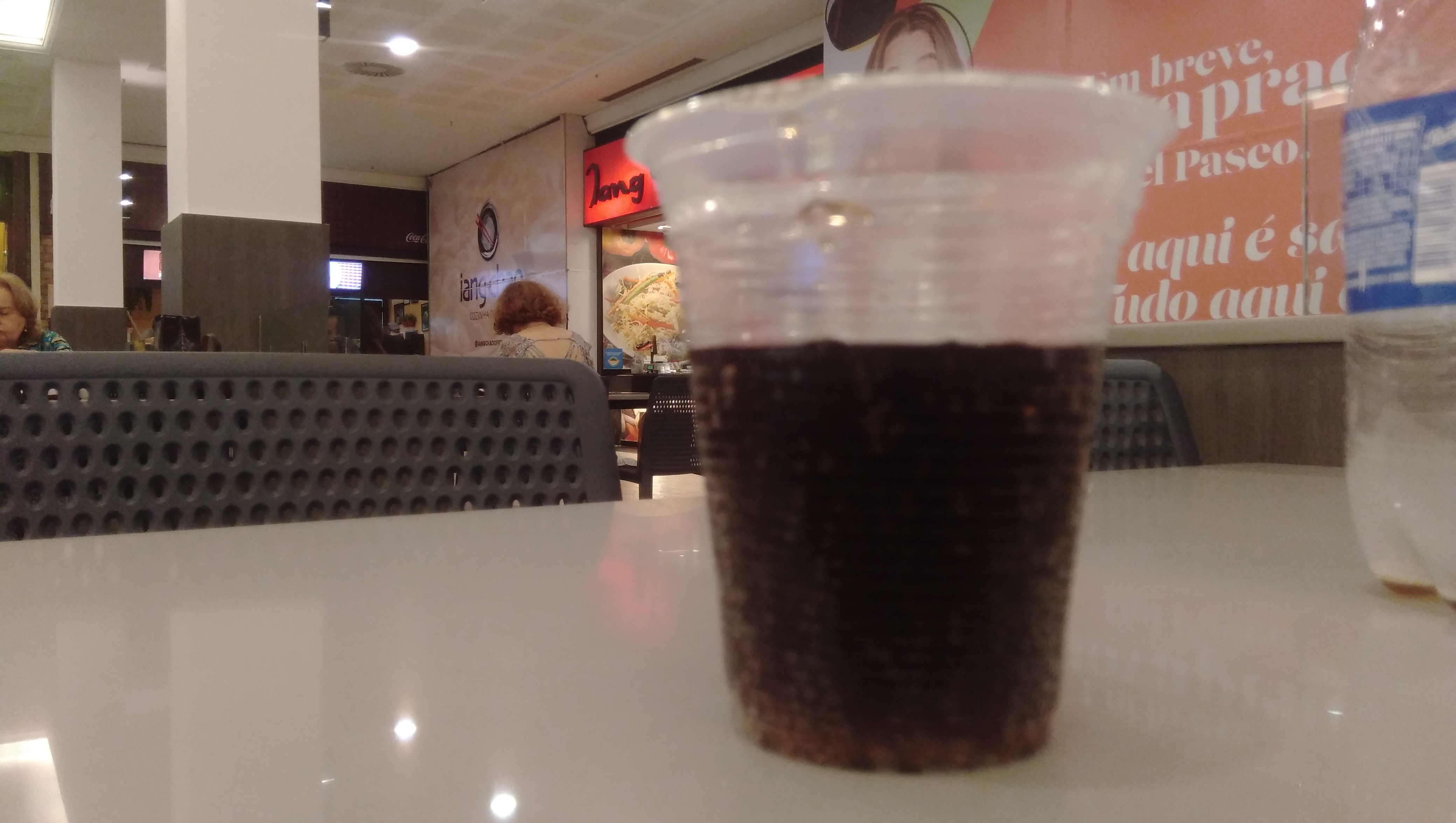 No meu lado Norte, um casal e um filho, aonde cada um tinha um prato diferente. A criança comia sushi com Coca-Cola, o pai, salada com Heineken, a mãe, uma bela pratada de arroz com Maminha e um suco de cor alaranjada. O pai sujou sua camisa com o nome New York City, a criança mangou e a mãe avisou que ele ia lavar, para deixar de ser desastrado. A criança falou que o papai parecia que era filho da mamãe. O pai riu e disse que a culpa era da salada.