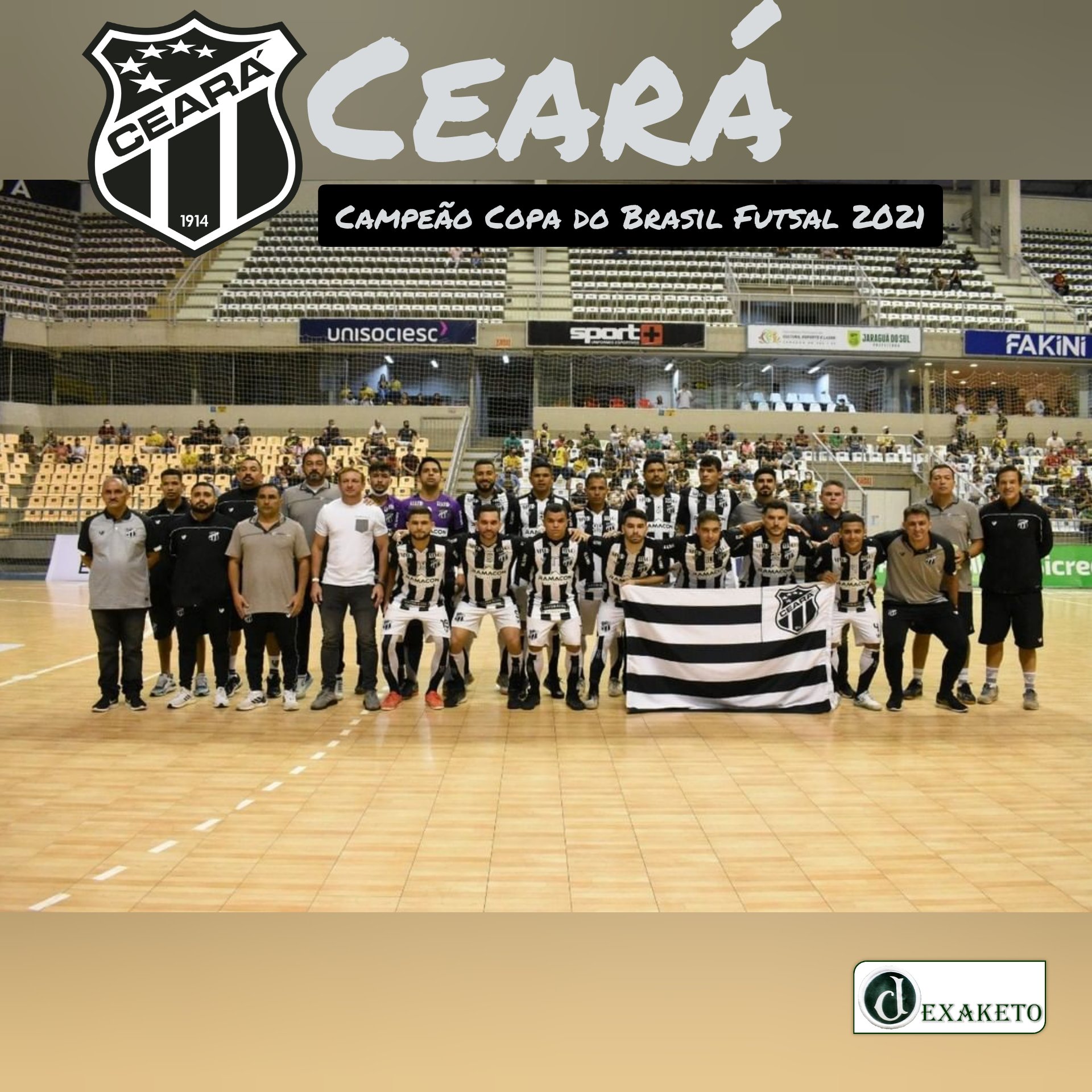 Neste domingo (26), o Ceará SC conquistou a Copa do Brasil de Futsal 2021. O Vozão bateu o tradicional Jaraguá por 4×1 (1×1 no tempo normal/ 3×0 na Prorrogação). O grande destaque da equipe foi João Cesar, autor de 2 dos 4 gols da equipe alvinegra.