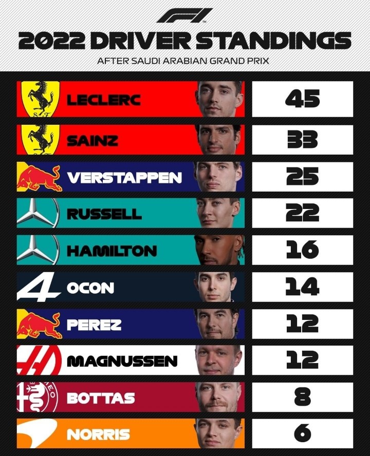 A Segunda etapa da Fórmula 1 2022 foi eletrizante! Diferente do GP da temporada passada, a prova saudita nos reservou momentos intensos e cheios de surpresas. Max Verstappen (Red Bull) garantiu a primeira vitória na temporada após um pega sensacional contra Charles LeClerc (Ferrari) nas voltas finais. Outro pega interessante ocorreu entre os pilotos da Alpine, Alonso e Ocon, mas isto ocorreu nas primeiras voltas. Alonso, junto com Ricciardo e Bottas, acabaram por quebrarem quase juntos entre as voltas 30 e 40. Perez foi o grande azarado da prova, pois terminou em quarto, após dominar a primeira parte da corrida, perdendo a liderança, por entrar nos “Boxes”, uma volta antes de entrar o Safety Car na pista. Hamilton encerrou apenas em décimo, e agradecendo aos céus.