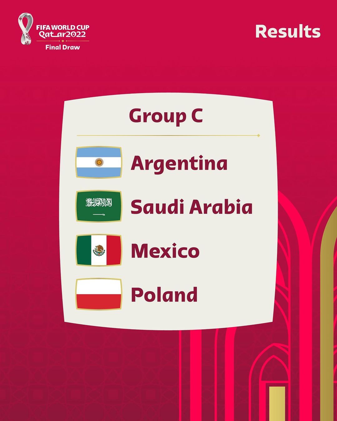 GRUPO C: Argentina; Arábia Saudita; México; Polônia.