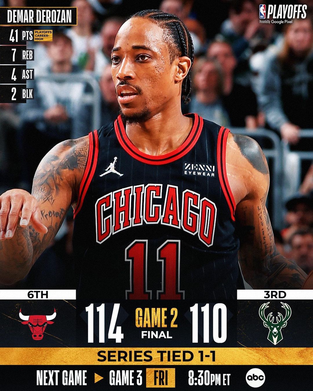 Em Milwaukee, Demar DeRozan amassou os Bucks, enquanto Caruso matou os atuais campeões, sendo o “Rei dos rebotes”. Antetokounmpo ainda criou muito, mas o dia era dos Bulls. Tudo ainda piorou para os Bucks, quando Middleton se machucou. Apesar disso, o fim arrebatador do time de verde colocou emoção até os instantes finais, mas nada que impedisse os Bulls de empatarem a série. DeRozan, que jogador!
