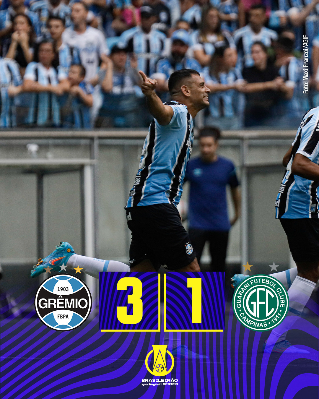 Em Porto Alegre, Diego Souza fez hat-trick e carimbou a primeira vitória do Grêmio na Segundona. Sobrou para o Guarani enfrentar o Imortal Tricolor inspirado. O Bugre segue sem vencer.