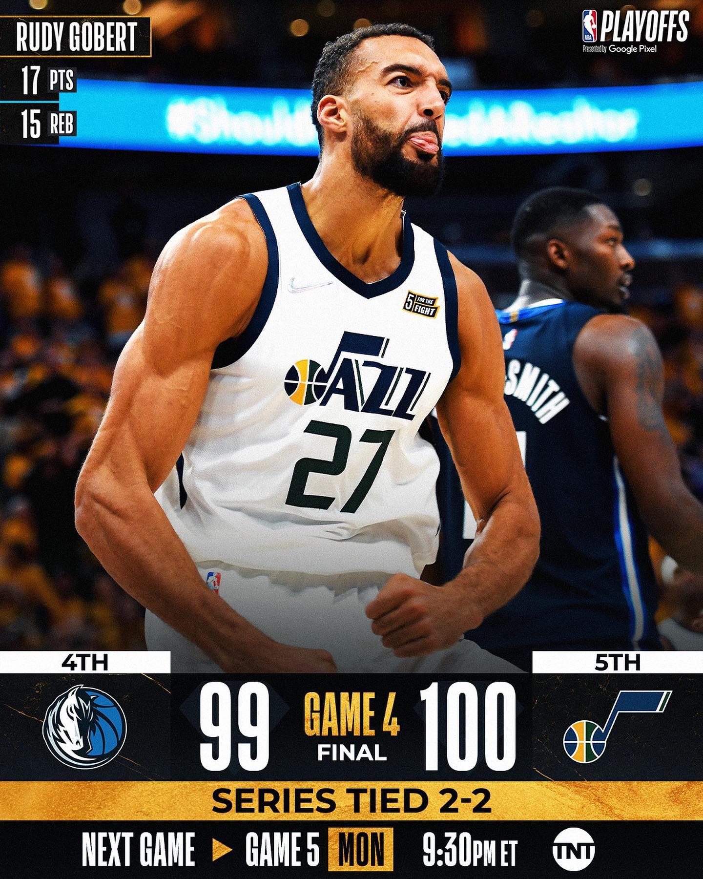 Em Utah, Goberts fez a cesta que garantiu a vitória dos Jazz sobre o Mavs, empatando a série e deixando a série tudo igual. Jogo Emocionante de uma série sem dono.