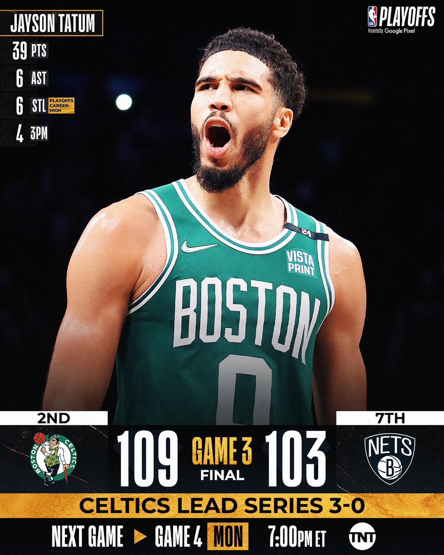 Ainda no Leste, comandados por Tatum, os Celtics conseguiram vencer os Nets em Nova York. Com isso, a Série está em 3×0, aonde os Celtics precisam de apenas mais uma vitória para Alcançar as Semifinais.