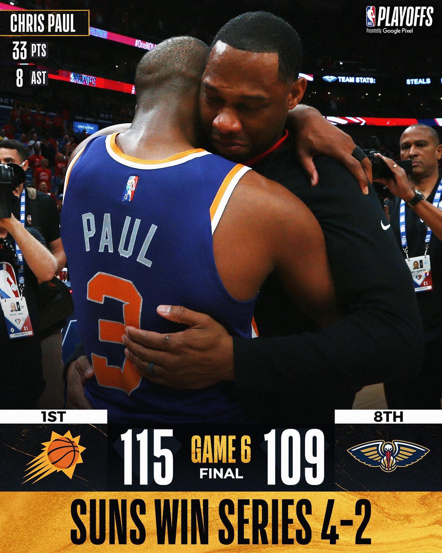 Em New Orleans, os Pelicans lutaram bravamente para segurar o Suns. O time que passou por 2 rodadas do Play-In foi valente, mas um time que tem Chris Paul tem tudo. O armador foi cirúrgico, impecável, monstro! Os Suns avança, como todo mundo esperava.