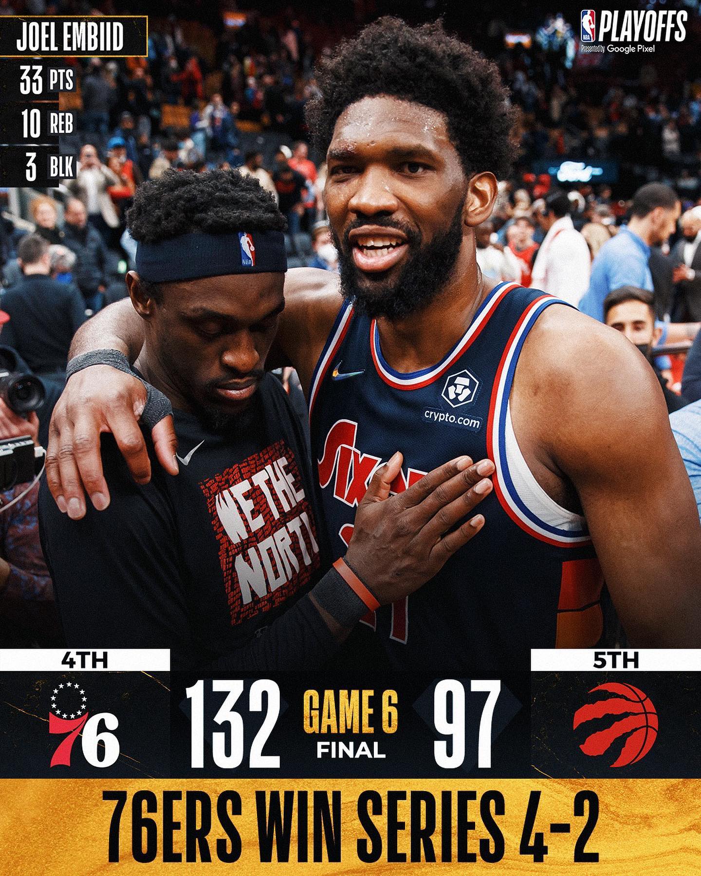 Em Toronto, não houve equilíbrio, os 76ers atropelaram e evitaram o susto. Embiid comandou o time da Filadélfia para a classificação para as Semifinais.