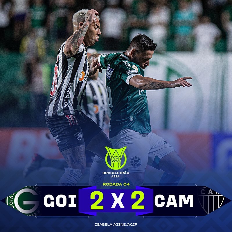 Em Goiânia, o Galo chegou a está duas vezes à frente do placar, mas o valente Goiás conseguiu arrancar o empate.