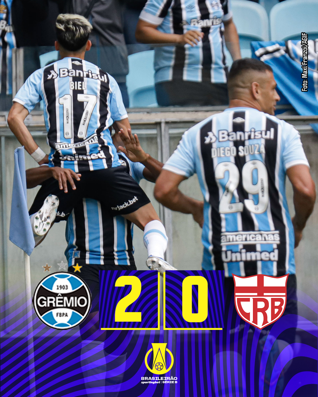 Neste sábado (30) mais 5 jogos ocorreram pela Série B. Em Porto Alegre, o Grêmio bateu o CRB e assumiu a liderança da Segundona. Enquanto isso, o Cruzeiro superou a Chape na Arena Condá e também entrou G4. Desde que o Cruzeiro caiu é a primeira vez que o time fecham uma rodada entre os 4 primeiros.