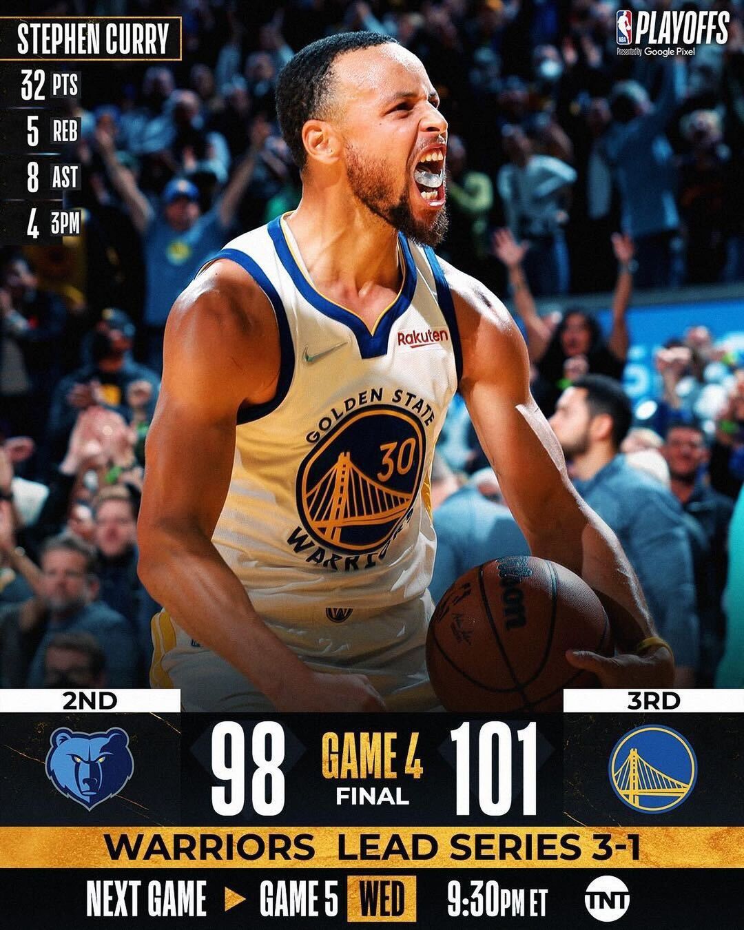 Em San Francisco, tudo deu errado para os Warriors! As bolas de 3 de Curry e Thompson não caíam, a defesa do Memphis destruía todas as jogadas ofensivas. Jackson Jr e Anderson doutrinavam no garrafão… e mesmo assim os Warriors venceram. Sim, o time da casa esteve na liderança do placar apenas nos últimos 47 segundos de jogo, e mesmo em um dia ruim, Curry fez 32 pontos. Sem Ja Morant, o Memphis sentiu na reta final, e os Warriors com Curry, vence até quando a derrota parecia inevitável. Única Série em 3×1.