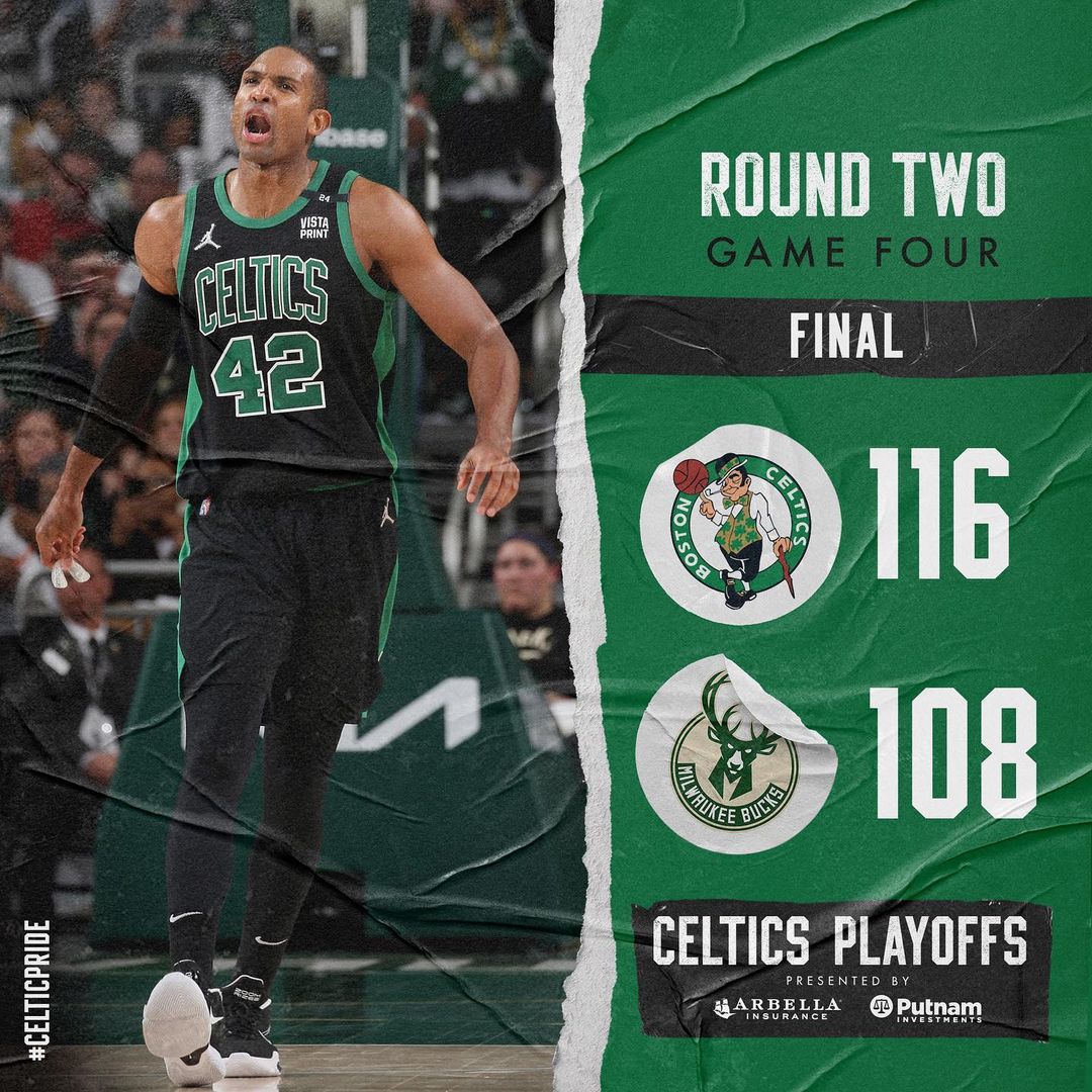 Em Milwaukee, os Bucks de Antetounkompo pareciam destinados à vitória. Com 3 períodos na liderança e com o controle da partida, parecia impossível o Celtics conseguiu alguma coisa. Porém, em um último período perfeito de Al Horford e Tatum, o Celtics esmagou os donos da casa e confirmaram o empate na Série.