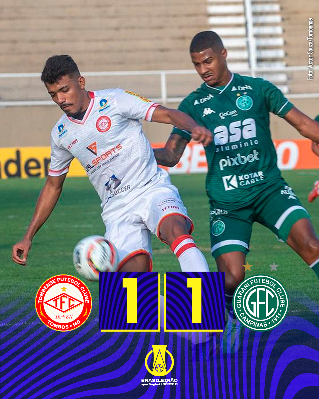 À tarde, o Guarani até saiu na frente, mas quem enfrenta a Tombense já sabe que vai empatar. Logo, a Tombense conseguiu alcançar o 1×1. Sem brincadeiras, sexto empate em sete partidas dos mineiros. O Bugre segue pertinho da ZR (Zona de Rebaixamento)
