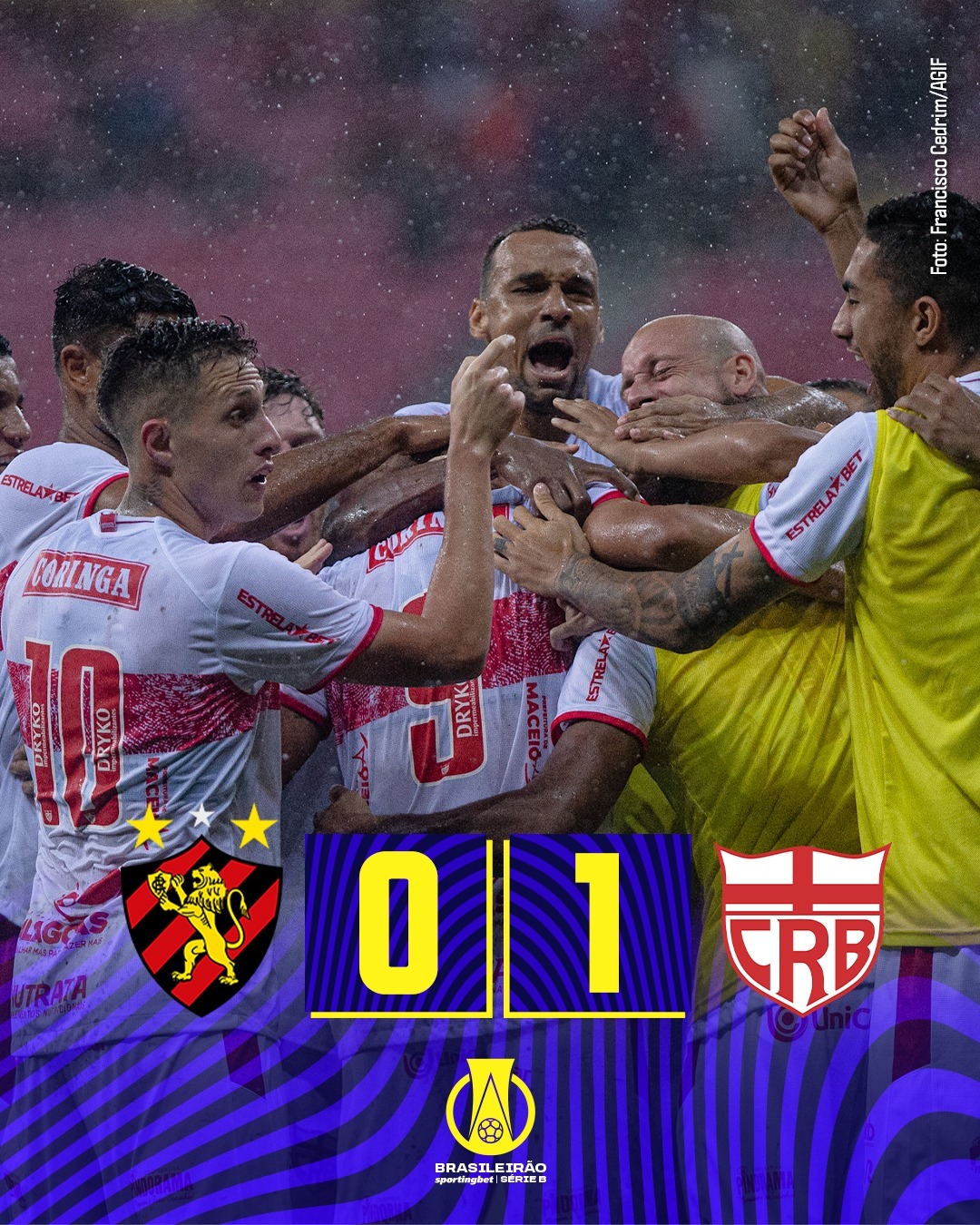 Em Recife, “Habemus Jogo”! Depois da partida ser adiada na noite de segunda-feira devido às fontes chuvas na Ilha do Retiro, hoje, na Arena Pernambuco, a partida aconteceu. De pênalti, o CRB bateu o Sport, debaixo de um toró medonho! Anselmo Ramon fazendo a torcida do galo ainda mais feliz.