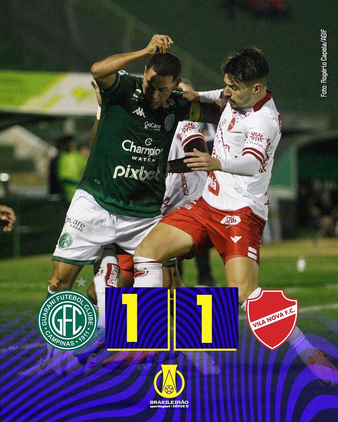 Em Campinas, o Guarani esteve perto das pazes com a vitória, mas aos 50 do segundo tempo, fez um pênalti bobo, que confirmou mais um empate para o bugre e para o Vila Nova.