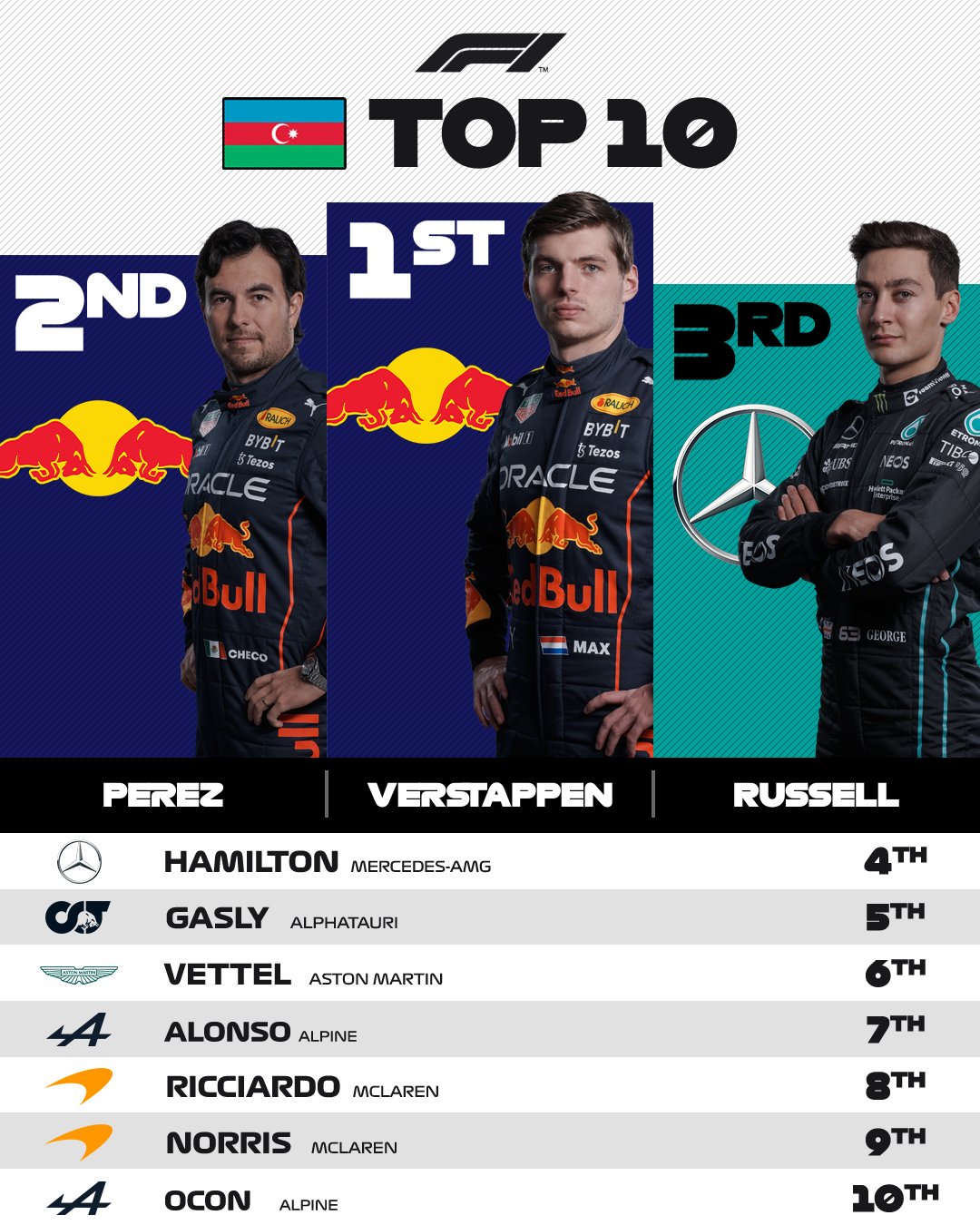 Neste domingo (12) aconteceu a oitava etapa do Campeonato Mundial de Fórmula 1 2022. O GP do Azerbaijão foi um baile da Red Bull. A Ferrari viu seus dois carros (LeClerc e Sainz) pifarem os motores, o que facilitou a vida de Verstappen e Perez, que fizeram mais uma dobradinha. Destaque também para a boa prova da Mercedes, apesar do carro ficar quicando a todo instante. O GP marcou também o recorde de Alonso, o piloto há mais tempo pilotando um carro de Fórmula 1.