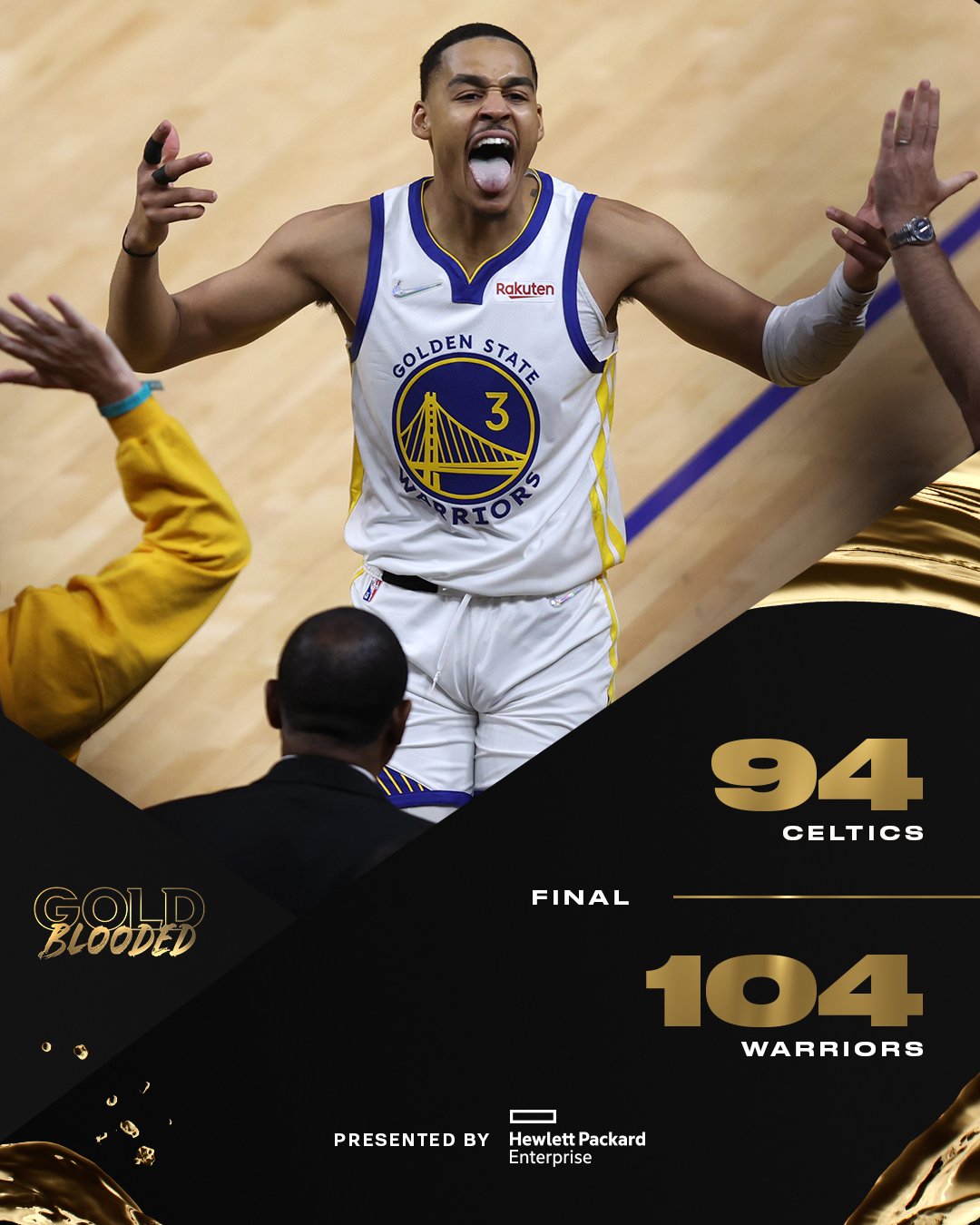 Celtics e Warriors controlaram 2 períodos cada, os Warriors mandando no primeiro e no último, e o Celtics dominando o segundo e o terceiro. Porém o diferencial ficou na concentração do sistema defensivo e na execução de pontos em momentos decisivos. Por exemplo, Smart errou 2 lances livres, em um momento do terceiro período que o Celtics podia chegar aos 6 pontos de diferença. Enquanto isso, Poole acertou uma bola de 3 do meio da rua no fim do terceiro período, que fez os Warriors entrar ganhando o período derradeiro. Mesmo com Curry longe de um dia de Curry, Wiggings, Poole e Thompson souberam ser decisivos. Já o Celtics viu suas estrelas, Tatum, Horford, Brown e Smart variaram muito dentro dos períodos, aonde iam de cestas incríveis à erros bobos.