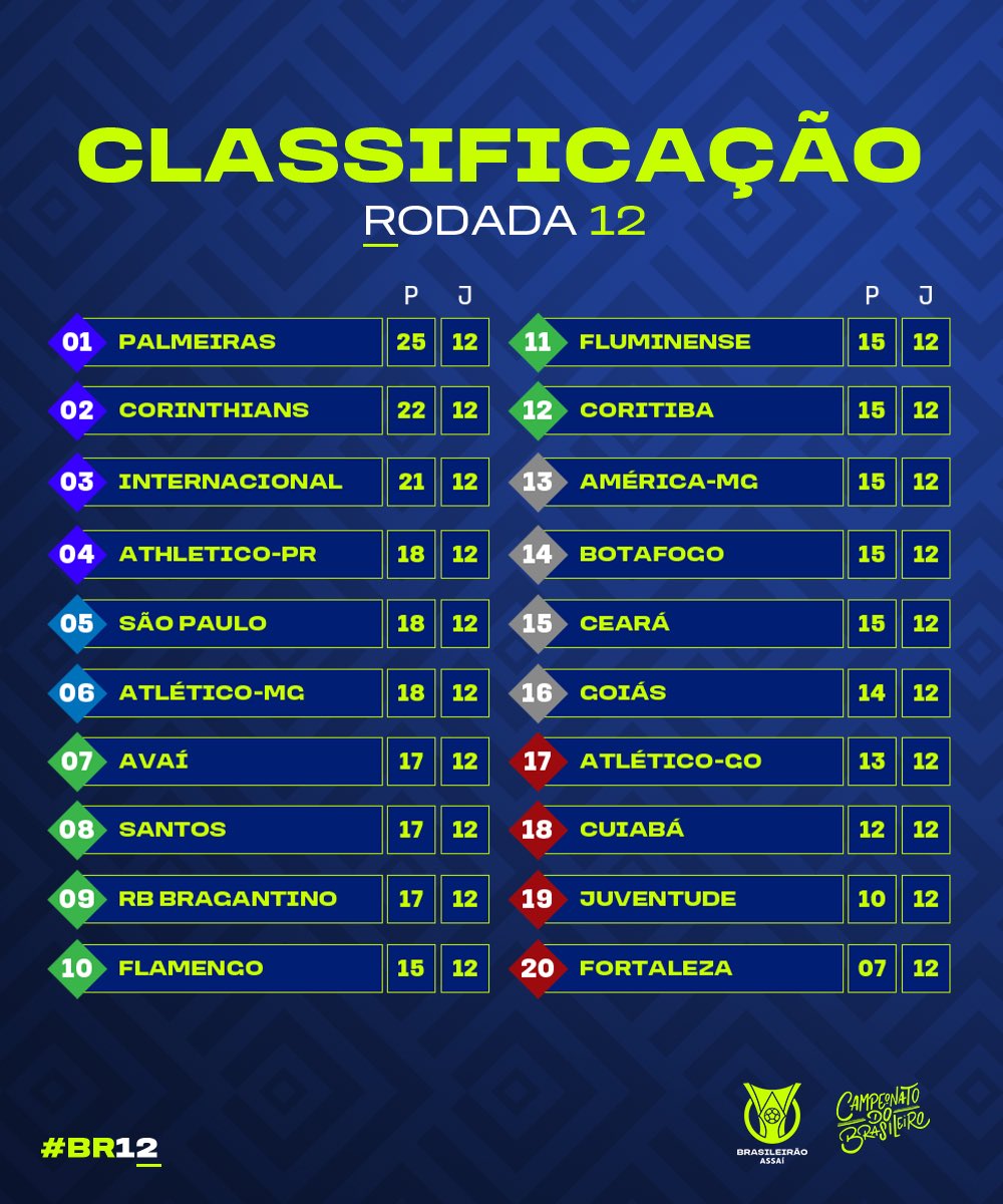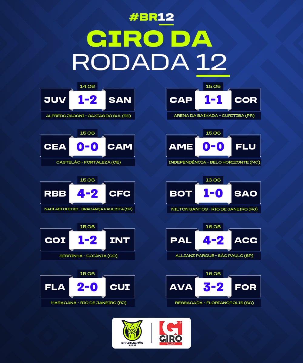 3 partidas fecharam a 12ª Rodada do Brasileirão.
