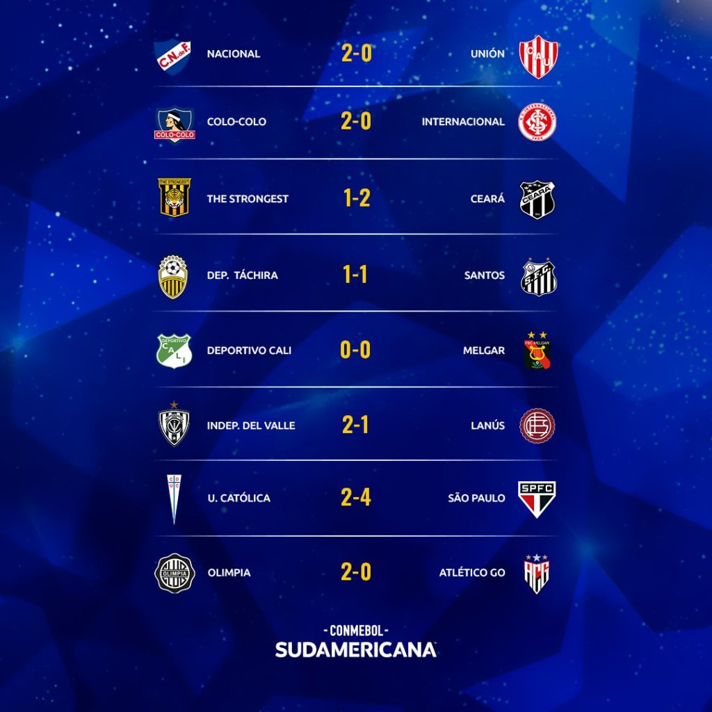 A Rodada de jogos de ida das Oitavas da CONMEBOL Sudamericana 2022 teve seu encerramento nesta quinta-feira (30). Dentre os brasileiros, São Paulo e Ceará conseguiram se destacar e encaminharam suas classificações. O Santos se salvou de uma derrota para o Tachira. Enquanto Internacional e Atlético Goianiense precisarão de um milagre para classificar. Veja como ficaram os marcadores.