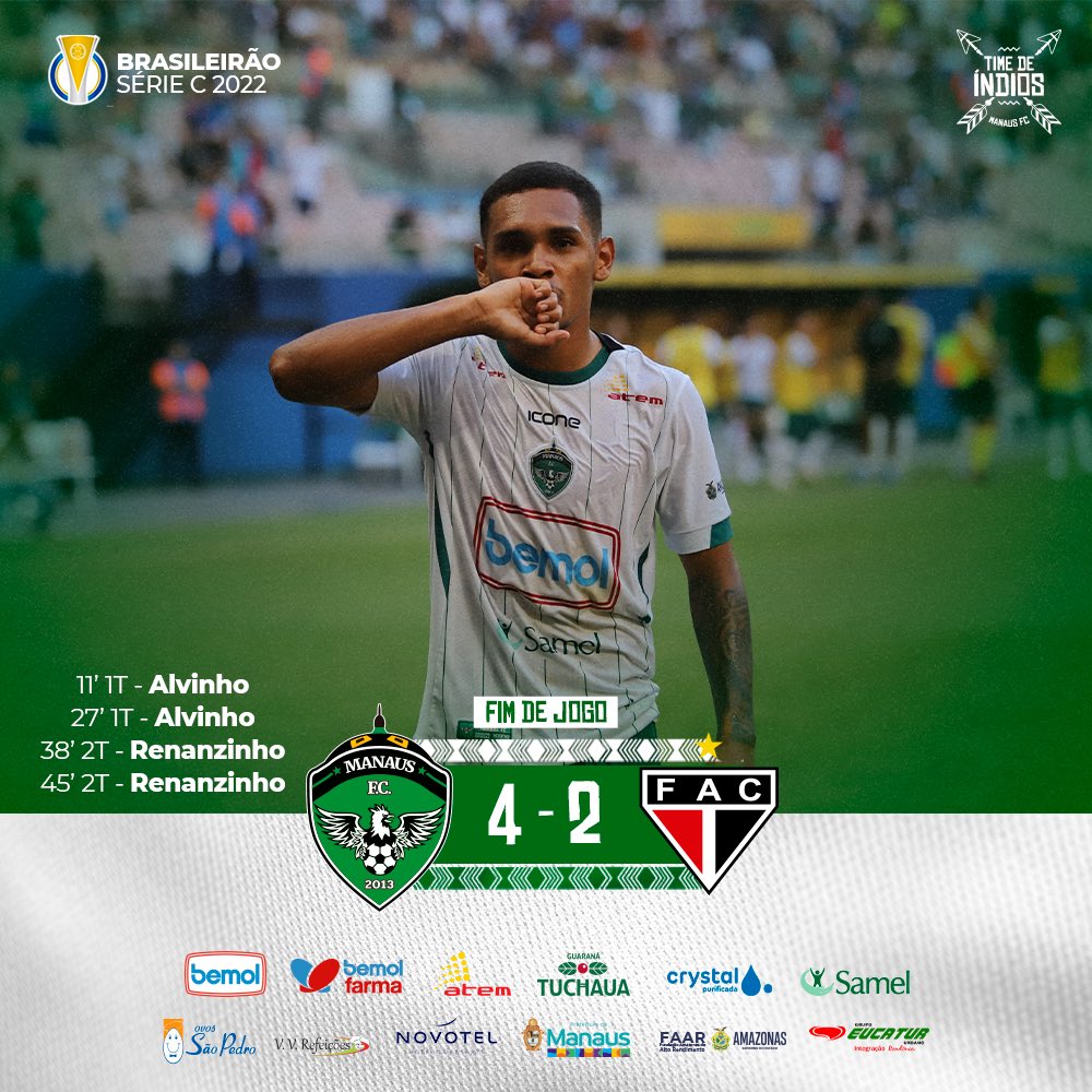 Na Arena da Amazônia, o Manaus abriu 2×0, o Ferroviário teve um jogador expulso, mas conseguiu empatar. Porém, Renanzinho marcou mais 2 e garantiu a vitória para o Verdão do Norte. Manaus no G8 e Ferrão no Z4 (Ferroviário fazendo força pra cair).
