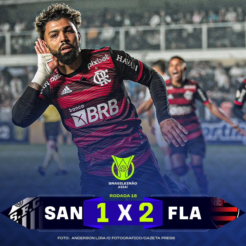 Com direito a gozação de Gabigol, o Flamengo venceu Santos, em plena Vila Belmiro por 2 a 1. Com o resultado, o Flamengo começa a se reaproximar da turma do G4, enquanto o Santos, viu o Flamengo chegar. Derrota com o sabor amargo para o Alvinegro praiano, Vitória com sabor de satisfação para o futuro time de Arturo Vidal.