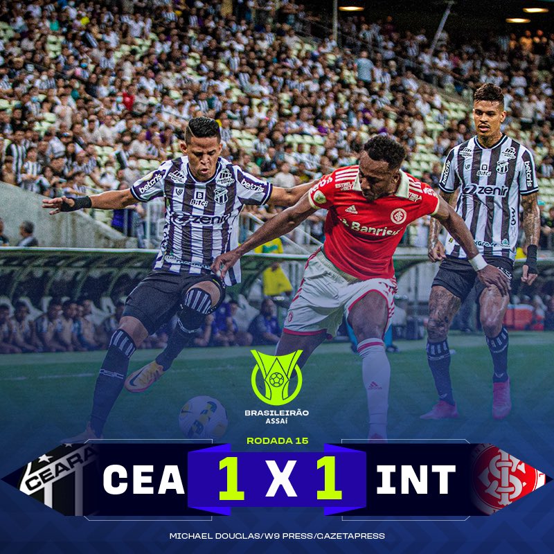 Falando em vozão, o Ceará não conseguiu ganhar no Castelão de novo! Empate contra o internacional. Com o resultado, o Ceará segue ali, naquela turma entre a sudamericana e os intermediários Enquanto isso, o Inter viu os dois atleticos o ultrapassarem, porém segue ali perto em quinto lugar na tabela.