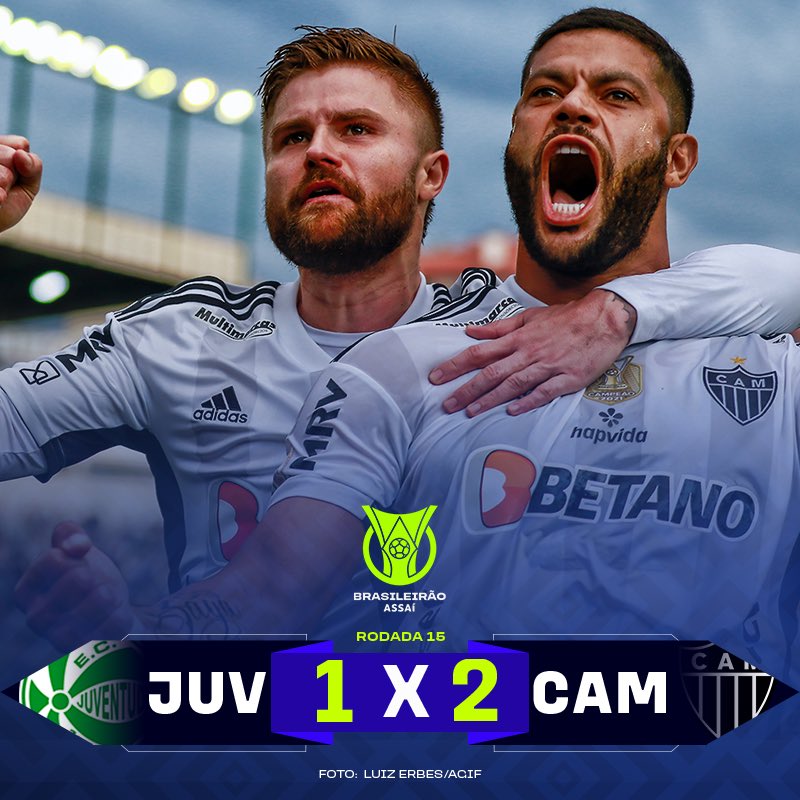 No primeiro jogo do dia, o Atlético Mineiro, até sofreu no finzinho, mas conseguiu bater a equipe do Juventude, em Caxias do Sul. O resultado colocou o galo em 3⁰ lugar! Enquanto isso, Juventude reza para o Fortaleza não ganhar para não voltar para a lanterna do campeonato.