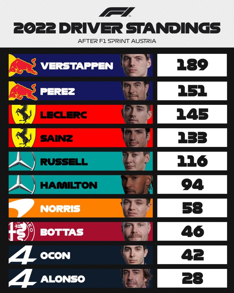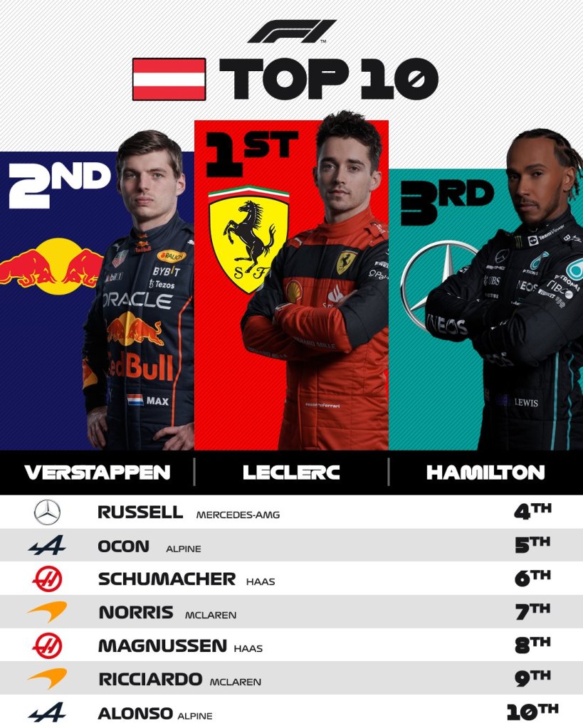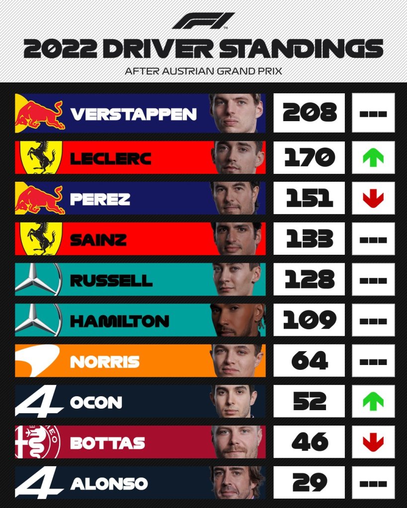 O resultado do domingo recolocou LeClerc na vice-liderança do campeonato. Isso aconteceu também pelo fato de Pérez ter sido colocado para fora da pista em um “encontrão” com Russell na primeira volta. Outro fato interessante do GP foi a sexta colocação de Mike Schumacher e a décima de Alonso.