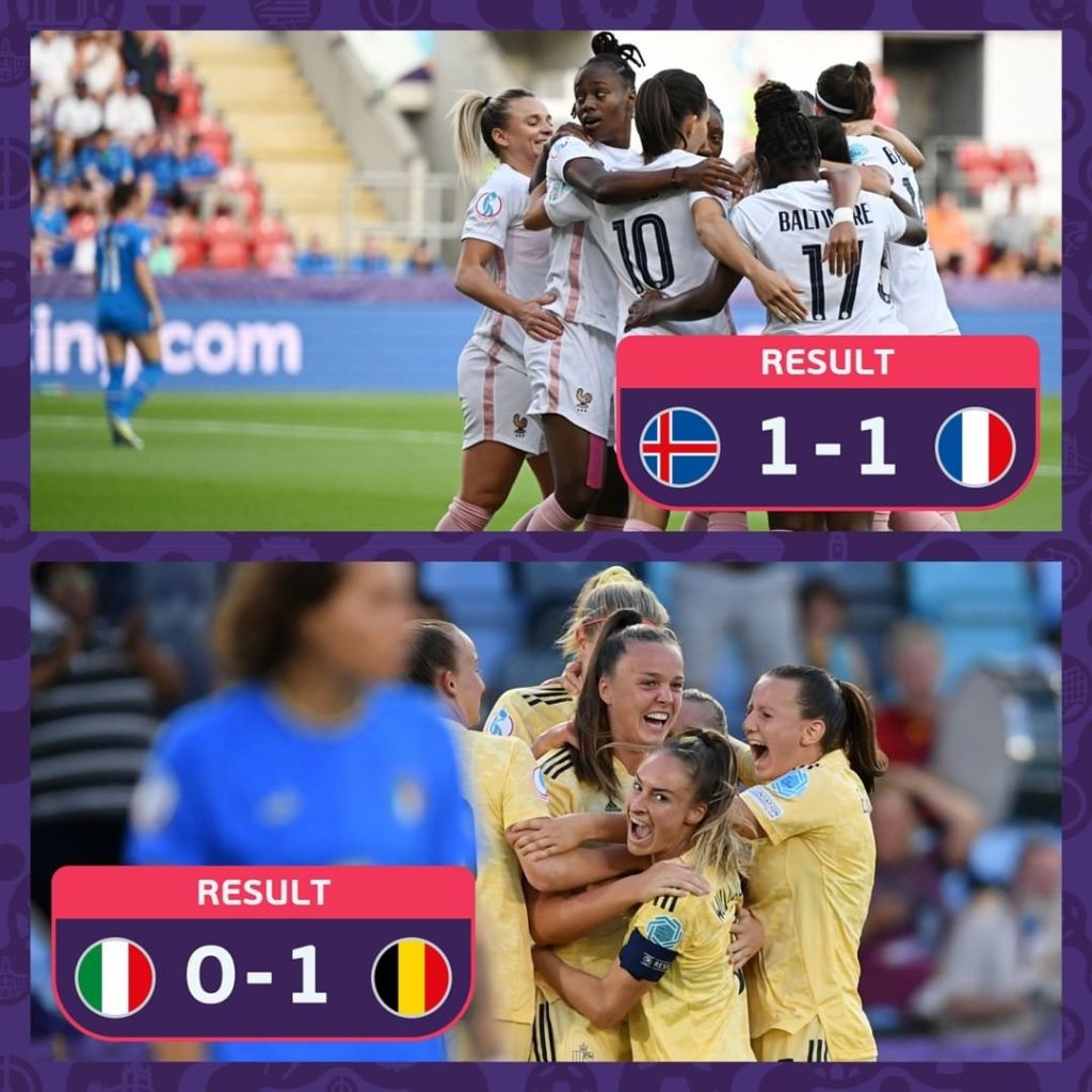 Últimas partidas da Fase de Grupo da Euro Feminina e também do Grupo D. A França, já classificada, apenas empatou com a Islândia. O ponto interessante da partida é que cada gol saiu numa ponta do tempo, o da França saiu no início da partida e o da Islândia no fim. Além disso, 2 gols franceses foram anulados pelo VAR. França não terminou 100% e a Islândia volta pra casa. Isso porque a Bélgica superou a Itália com um gol no início do segundo tempo. As belgas suportaram a pressão italiana e garantiram uma classificados inédita para o “mata-mata”da Euro Feminina.
