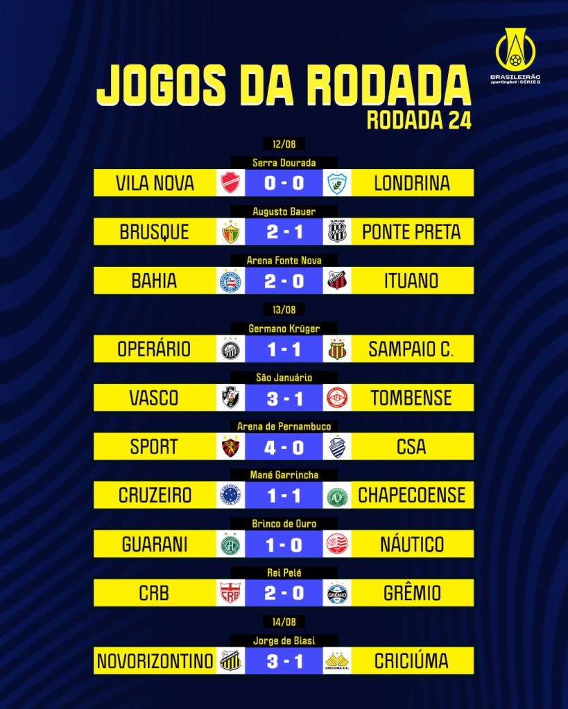 Lá embaixo, o Guarani venceu o confronto direto com o Náutico em uma noite inesquecível para o goleiro Kozlinski. Enquanto que o Vila Nova conseguiu engatar seu 14º empate e o CSA perdeu a chance de escapar. Operário e Chapecoense seguem paquerando o Z4.