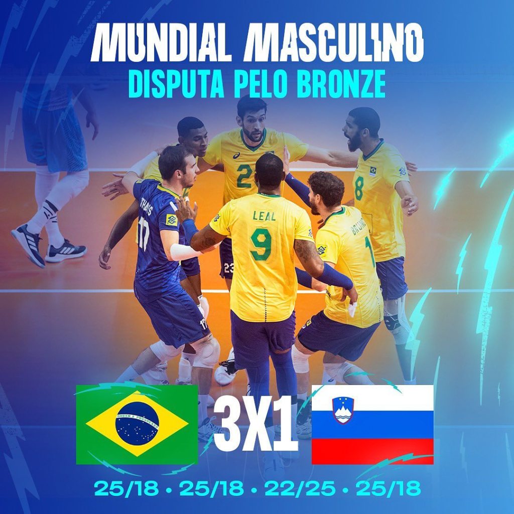 Pelo sexto Campeonato Mundial Consecutivo, a Seleção Brasileira de Vôlei garantiu um lugar no pódio. Depois dos títulos de 2002, 2006 e 2010, e dos vice-campeonatos de 2014 e 2018, a seleção comandada por Renan garantiu o Bronze ao bater a Eslovênia por 3×1. Em um grande jogo de Lucão, Wallace, Leal e Thales, o Brasil mostrou que a derrota nas Semifinais não diminuiu o desejo que levar uma medalha para casa. Mesmo com um terceiro set estranho, a seleção conseguiu se impor sobre a Eslovênia, dominou a partida e conseguiu coroar esse feito de ser figurinha carimbada nos pódios dos Mundiais. Em um processo de renovação, foram os veteranos que brilharam e mostraram que a força do querer somada a qualidade técnica, pode superar alguns problemas físicos que venham a atrapalhar. Parabéns pela conquista, Brasil! Em 2026, vamos buscar esse Tetra!