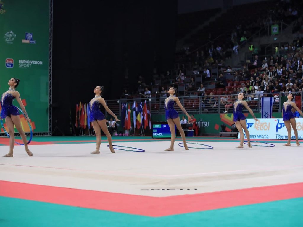 Neste domingo (18), na disputa dos 5 arcos, o conjunto brasileiro alcançou o melhor resultado da história do país em Mundiais de Ginástica Rítmica. 4° lugar com 33.350 pontos conquistados, ficando atrás apenas de Israel, Itália e Espanha.