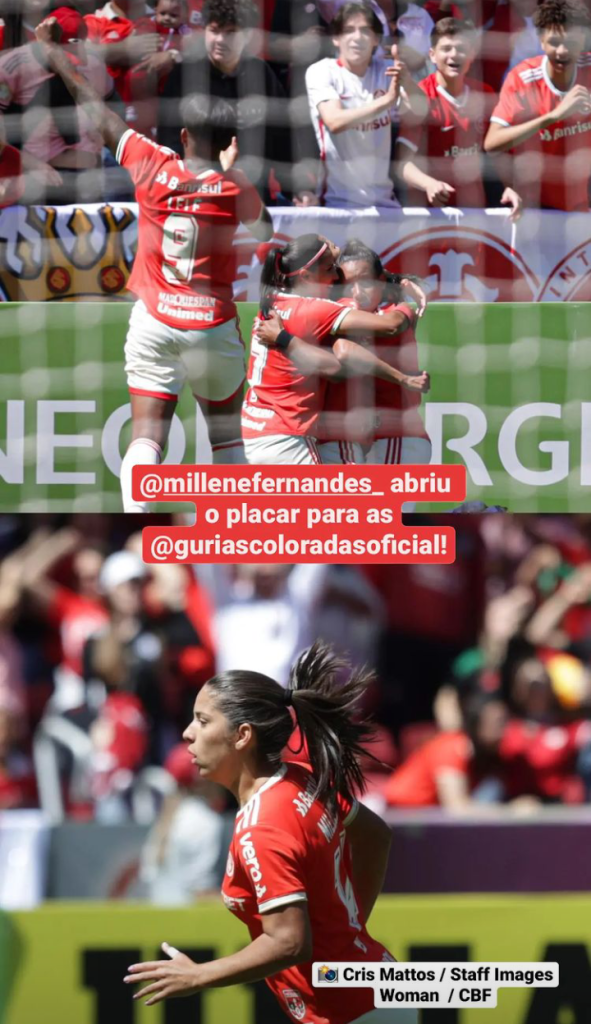 Em um jogo disputadíssimo, as gurias coloradas saíram na frente com o gol da ex-corintiana Milene, ainda no primeiro tempo. Isso em um momento do jogo em que o Corinthians tinha mais controle da partida.