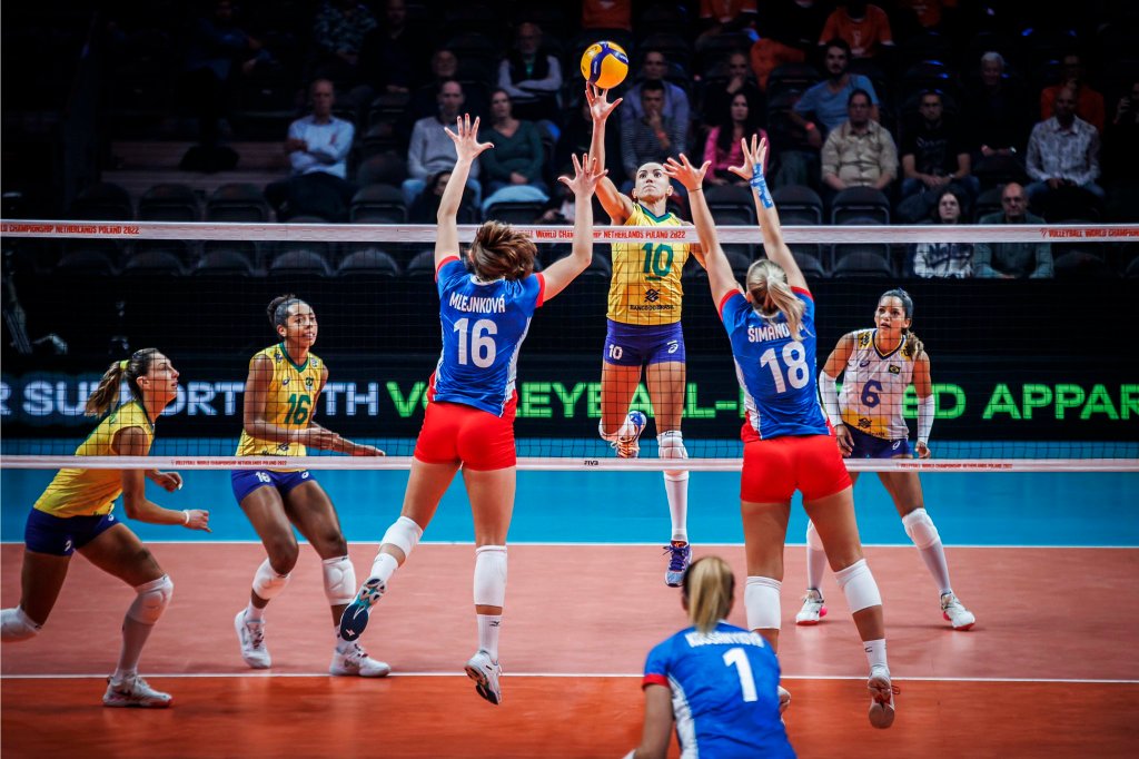 Começou neste sábado (24), o sonho pelo primeiro título Mundial do Vôlei Feminino Brasileiro. Depois das pratas nas Olimpíadas de Tókio e na VNL (Volleyball Nations League) 2022, a geração de Gabi, Carol, Macris, quer seu primeiro ouro, e este inédito pode ser perfeito. O primeiro passo foi dado hoje no duelo contra a República Tcheca. Um 3×1, aonde a seleção foi a seleção no primeiro, no segundo e no quarto set, porém teve um “blackout” no terceiro set, sem desvalorizar o bom jogo realizado pela seleção europeia. Gabi aterrorizou a defesa tcheca com 24 pontos, ou seja, quase um set inteiro de pontos da craque e capitã brasileira. As meninas voltam à quadra na segunda-feira (26) pela 2ª Rodada.