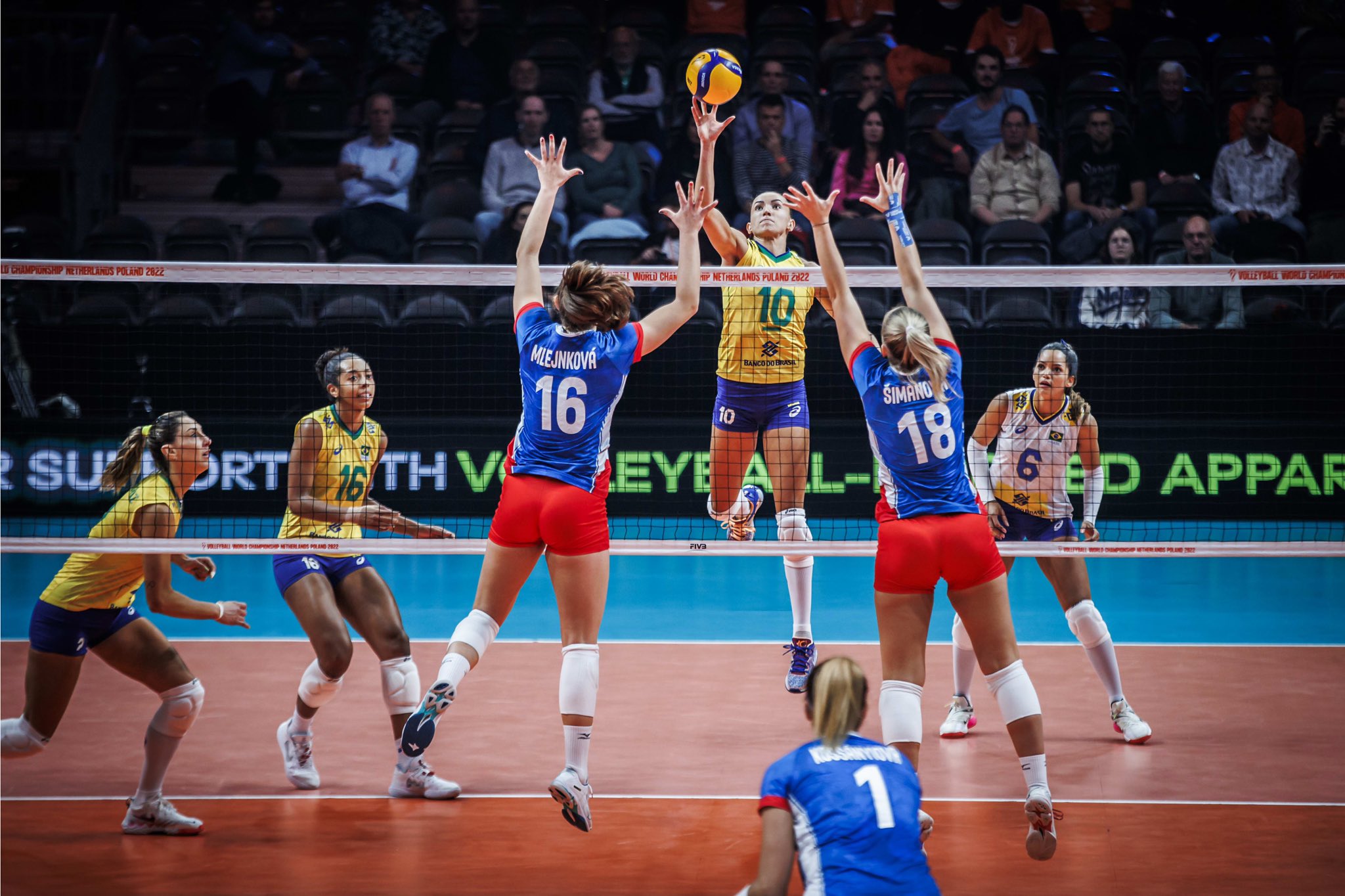 Começou neste sábado (24), o sonho pelo primeiro título Mundial do Vôlei Feminino Brasileiro. Depois das pratas nas Olimpíadas de Tókio e na VNL (Volleyball Nations League) 2022, a geração de Gabi, Carol, Macris, quer seu primeiro ouro, e este inédito pode ser perfeito. O primeiro passo foi dado hoje no duelo contra a República Tcheca. Um 3×1, aonde a seleção foi a seleção no primeiro, no segundo e no quarto set, porém teve um “blackout” no terceiro set, sem desvalorizar o bom jogo realizado pela seleção europeia. Gabi aterrorizou a defesa tcheca com 24 pontos, ou seja, quase um set inteiro de pontos da craque e capitã brasileira. As meninas voltam à quadra na segunda-feira (26) pela 2ª Rodada.