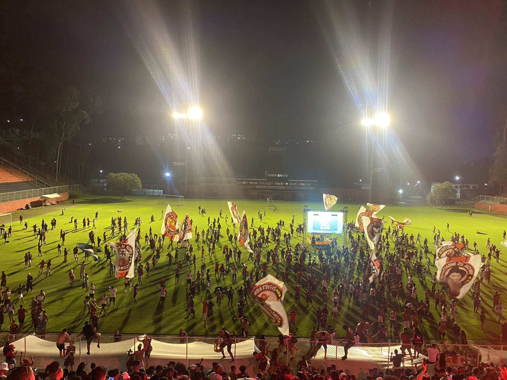 Foi com emoção até o último minuto! Se o ABC subiu tranquilo na semana passada, o torcedor do Vitória quase enfartou na tarde/noite deste sábado (24). O Leão rubro-negro conquistou o acesso, graças a uma combinação de resultados. É verdade que a equipe dependia só de si, porém não conseguiu bater o Paysandu, já eliminado, e viu o empate em 1×1 não ser o suficiente. Entretanto, o Figueirense não conseguiu superar a defesa potiguar, fechando em 0x0 o placar, em um Orlando Scarpelli lotado. Com a combinação, o Vitória terminou a 2ª fase no 2º Lugar do Grupo C, com 9 pontos, 2 à mais que os 7 pontos conquistados pelo Figueirense. Sim, o time que passou quase toda a primeira metade da Terceirona com riscos reais de rebaixamento para Série D, conseguiu arrancar na 1ª Fase e na 2ª Fase, com a força e fé de sua apaixonada torcida, e está de volta a um lugar que não é seu (Vitória é time de Série A), porém é muito melhor do que o que estava nesta temporada. A sina do Leão chega ao fim em apenas uma temporada, a Série C foi um pesadelo que durou apenas um ano. Agora que venha a Segundona! Parabéns, Vitória! O acesso é seu!