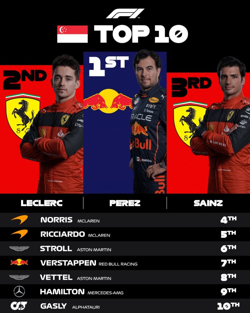 Com uma corrida dominada desde a largada, quando ultrapassou o pole Charles LeClerc, Sérgio Perez fez mais uma corrida madura e sem grande riscos. Quando precisou abrir 5 segundos do ferrarista por causa de uma punição por infração no momento do Safety Car, o mexicano foi lá e deixou 7 segundos. Uma corridaça do segundo piloto da Red Bull. Verstappen podia ser campeão neste domingo, porém erros da Red Bull o fez precisar subir o escalão por 2 vezes. O título foi adiado, mas tem 5 chances ainda de acontecer. Destaque para as McLaren’s e Aston Martin’s, que sobreviveram ao GP com mais abandonos na temporada, e com os dois pilotos entre os 10 pontuadores. Mercedes e uma corrida pra esquecer. Ferrari com os dois pilotos no pódio. Próxima parada, Japão.