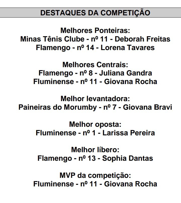 Fluminense, Flamengo e Minas (que conquistou o Bronze ao bater o GNU na disputa pelo 3º Lugar) estão classificados junto com Maringá, Barueri e Mampituba, pódio da Classificatória de Curitiba, na Fase Final do CBI Sub-19, que ocorrerá em Saquarema.