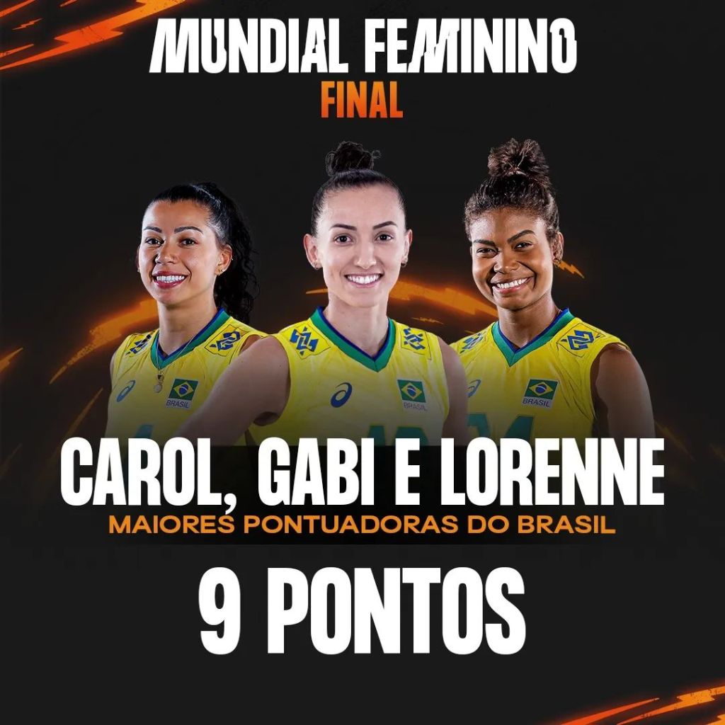 A ponteira Gabi, a central Carol e a oposta Lorenne foram as maiores pontuadoras do Brasil no jogo, com nove pontos. Além disso, Gabi e Carol garantiram seu lugar na na seleção do campeonato!