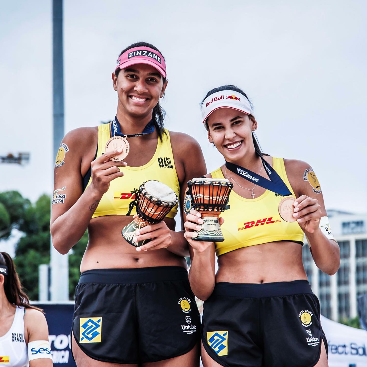Na etapa da Cidade do Cabo do Elite 16 do Circuito Mundial de Vôlei de Praia, o Brasil voltou com duas medalhas na mala. A dupla do Praia Clube, Duda e Ana Patrícia, superaram as francesas Placette e Richard por 2×0 (21×15/21×15) e conquistaram a medalha de Bronze. Enquanto isso, a dupla recém-formada por Talita e Thamela voltam da África do Sul com o ouro. A medalha foi garantida na vitória sobre as americanas Cannon e Sponcil por 2×0 (22×20/21×16). Isso sim é uma estreia! Parabéns as meninas por mais essas conquistas!